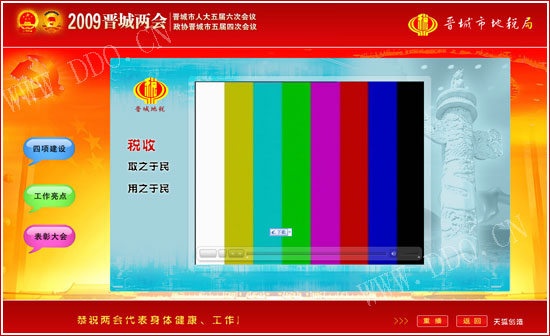 系統(tǒng)歡迎界面,跟隨計(jì)算機(jī)同步啟動(dòng),確保兩會(huì)代表使用計(jì)算機(jī)時(shí)第一眼就能看到晉城地稅形象宣傳。